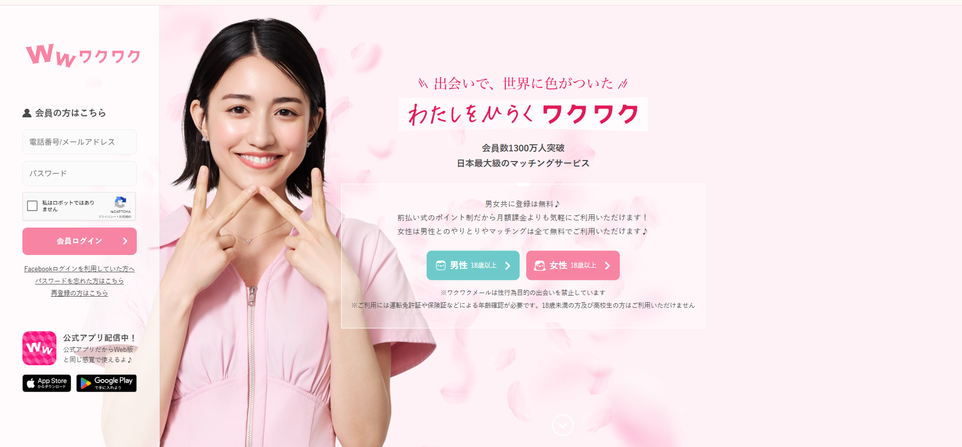ワクワクメールは、長年運営されている恋活系マッチングサービスです。利用者数が多く、男女ともに日常的に活用されている点が特徴です。アプリだけでなくWeb版でも利用でき、空いた時間に気軽にコミュニケーションができる仕組みになっています。