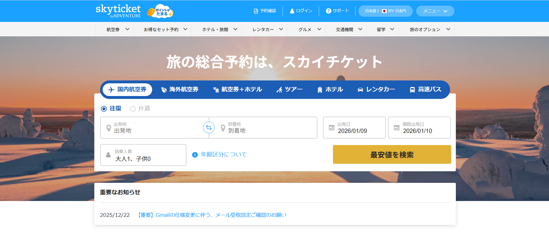 スカイチケットは、格安航空券を探したい方や、