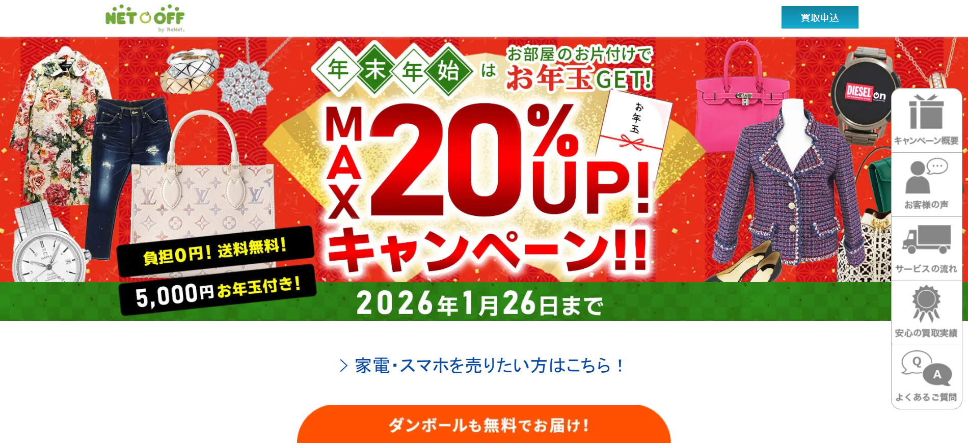 - 圧倒的な手軽さ:梱包用の段ボールが無料、自宅まで無料集荷。重い思いをして店舗へ行く必要はありません。