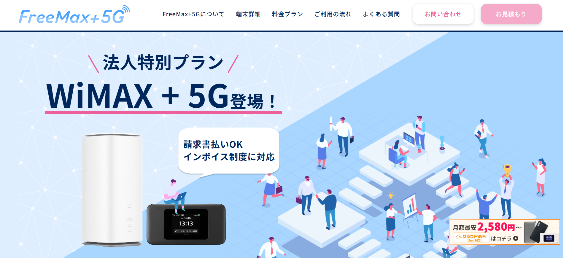 まずは公式サイトから法人専用の資料請求、またはお見積もりを。御社のビジネススピードを、FreeMax+5Gが加速させます。