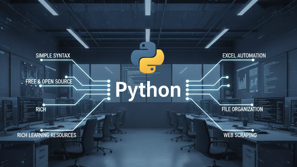 PythonはAIやデータ分析の分野で有名ですが、実はビジネスの現場でも活躍しています。 たとえば、Excelの集計、ファイルの整理、メール送信など、日常の“面倒なルーチン作業”を自動化できるのです。
