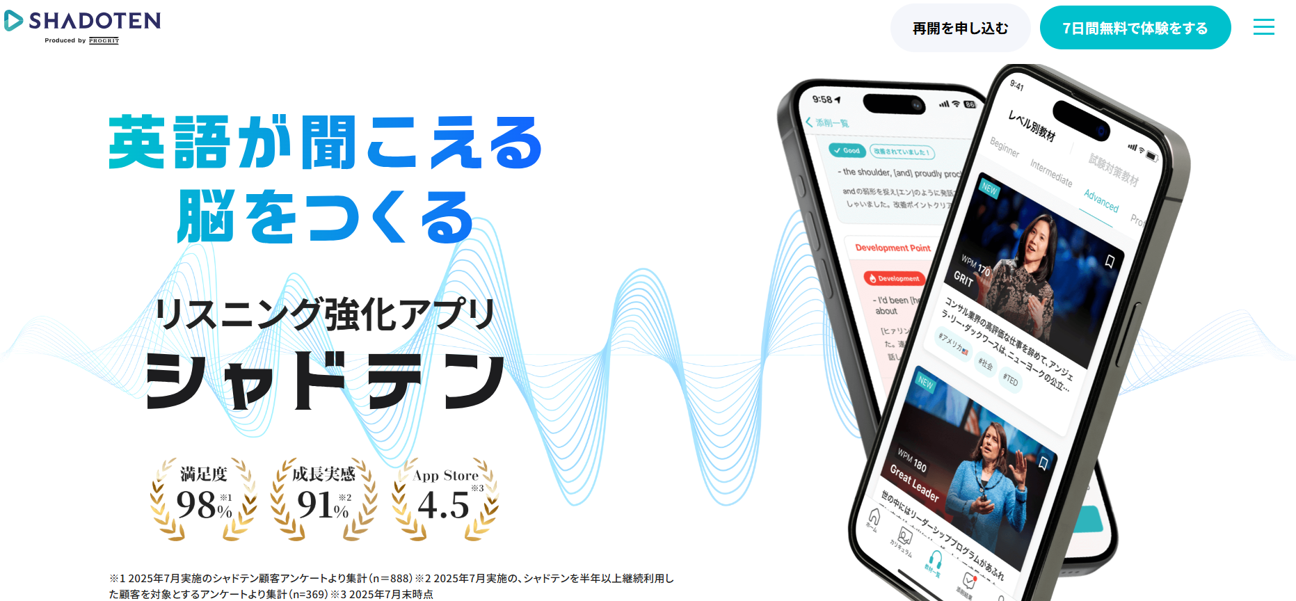 リスニング力を確実に伸ばすには「正しい方法での反復」が欠かせません。シャドテンはその条件を満たし、さらにプロの添削という強力なサポートが加わった学習サービスです。